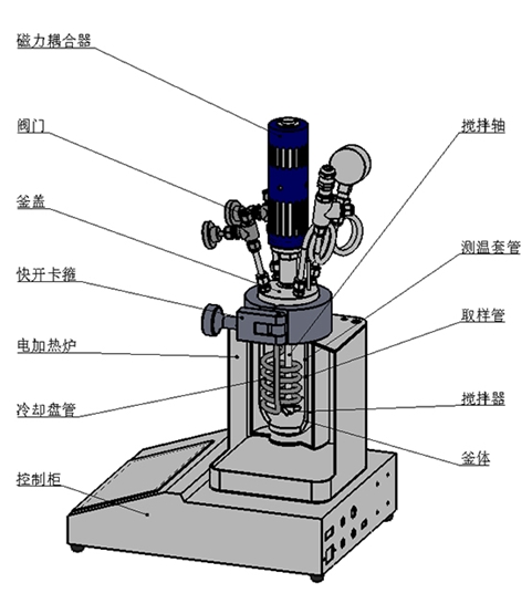 产品功能和特点:台式,机电一体化设计,主体快开设计,开闭釜操作方便、快捷,高扭矩磁力传动,配优选电机,提升运行稳定性。搅拌支持定制桨叶类型,适配多样化搅拌需求;加热炉传热快,均热效果好,效率可调;真彩色触控屏,模块化显示,控制界面操作简洁;支持远程控制,具备RS485通讯口,配上位机软件,可显示工作时间/温度/转速/压力,PID自整定控温精准;具备安全连锁功能,超温超压报警;具备数据采集,记录以及报表导出功能;支持选配加料、计量、取样、冷凝等扩展功能。