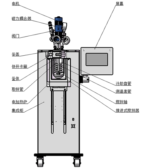 产品功能和特点:升降型式,机电一体化设计、结构紧凑;框架支撑结构,配脚轮方便移动;主体可快开设计,开闭釜操作方便、快捷;升降辅助机构方便操作,手动/电动可选;高扭矩磁力传动,配优选电机,提升运行稳定性;搅拌支持定制桨叶类型,适配多样化搅拌需求;加热炉传热快,均热效果好,效率可调;真彩色触控屏,模块化显示,控制界面操作简洁;支持远程控制,具备RS485通讯口,配上位机软件;可显示工作时间/温度/转速/压力,PID自整定控温精准;具备安全连锁功能,超温超压报警;具备数据采集,记录以及报表导出功能;支持选配加料、计量、取样、冷凝等扩展功能。